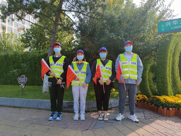 早晨7到9點是上班的高峰期,黃村西大街地鐵站路口來往的行人和車輛都很多,經過交警的培訓指導,華騰化工團員青年欣然值守在斑馬線旁,大家不斷提醒行人要走斑馬線,提醒車輛要禮讓行人,并攙扶行走不便的大爺大媽過馬路。