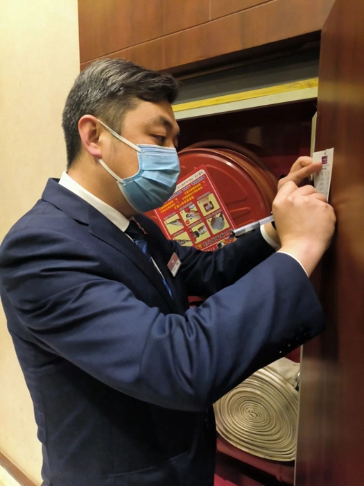 冬奧會接待任務結束后,酒店又分別在3月份和10月份接待了新冠肺炎密接隔離人員。季毅征塵未洗,又組織酒店中控室人員嚴格執行防疫指揮部的工作規范,嚴密監控隔離區的每個點位,發現違規行為及時報告。同時嚴把酒店出入口防護關,指揮調度送人、接人,以及工作車輛有序進入酒店,確保不發生時空交集。根據疫情需要,隔離人員的轉運基本在夜間進行,只要有任務就有季毅的身影。