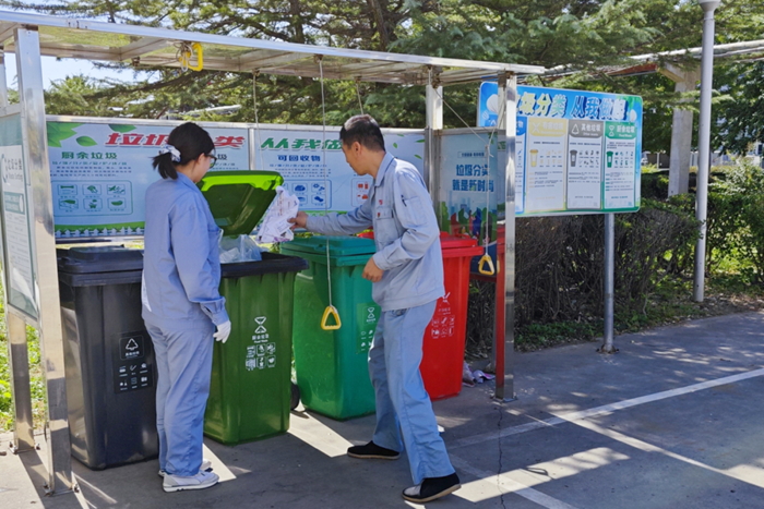 中秋國慶“雙節(jié)”剛過,化工廠組織干部職工在辦公樓周邊桶站,開展“我的垃圾我來分”活動。