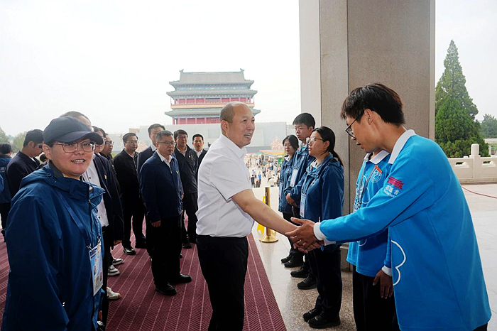 5月23日,北京化工集團黨委常委、副總經理韓寶海一行來到毛主席紀念堂,看望慰問開展志愿服務的技師學院青年志愿者。