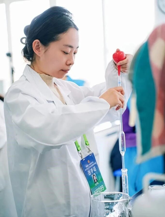 決賽現場,氣氛凝重。高手過招,勝負往往就在微末之間,比賽中,意外情況偶有發生,而秦亞寧的工位卻呈現出一種奇特的“安靜”。她只是微微調整呼吸,目光重新聚焦于眼前的器皿,手上的操作節奏絲毫未亂,沉穩如常。正是這份“遇亂不慌、以穩補快”的定力,讓她在激烈的角逐中始終保持高水準發揮,最終將誤差牢牢鎖死在極小的范圍內,也鎖定了勝利。榮譽不是終點,而是新的起點。秦亞寧已經將競賽中學習到的新理念、新方法的“真經”帶回班組,和同事們一起研討,以提升實驗整體效率和數據的可靠性。“比賽是個人技能的拔高,但最終價值,要體現在為產品質量保駕護航中。”秦亞寧自信地笑著……
