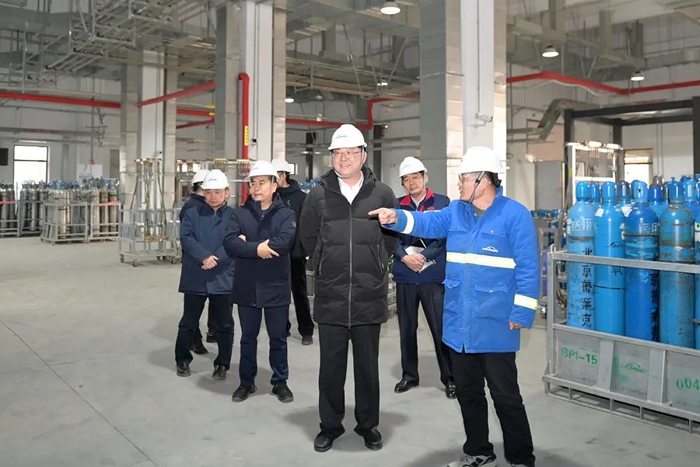 陳宇首先走進(jìn)北普工廠,深入生產(chǎn)一線了解氣體保供情況 。陳宇詳細(xì)查看了北普工廠灌裝生產(chǎn)線運(yùn)行情況、氧氣瓶安全裝卸、運(yùn)輸和各類氣瓶的存儲(chǔ)情況。詳細(xì)了解了節(jié)日期間首都各大醫(yī)院需求情況及保障措施。叮囑一線干部職工要始終把安全生產(chǎn)放在首位,堅(jiān)決扛起節(jié)日期間安全生產(chǎn)主體責(zé)任,同時(shí)要加強(qiáng)調(diào)度,為首都各大醫(yī)院提供及時(shí)便捷的保障服務(wù),確保首都市民度過一個(gè)安全健康的春節(jié)。