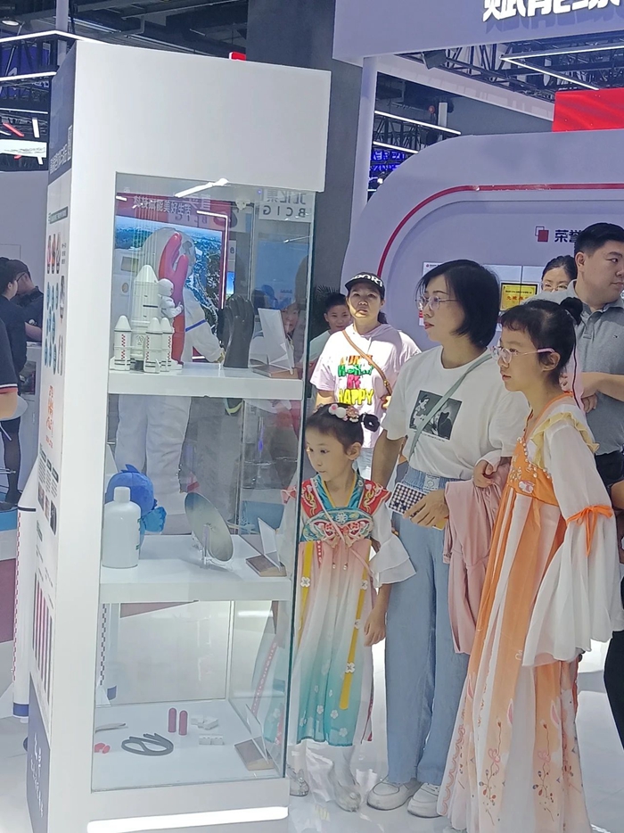 在展位現場,有的觀眾對于展示的儲氫瓶內膽專用材料高度關注,并有強烈的合作意愿,有的觀眾對展示的軟包裝膠黏劑主動提出市場開發合作意向,還有很多觀眾帶著孩子逐一學習觀摩展出的化工領域創新產品。可以說,化工集團的主題展位既是商業合作的溝通交流平臺,又是了解化工、學習知識的科普教育平臺。