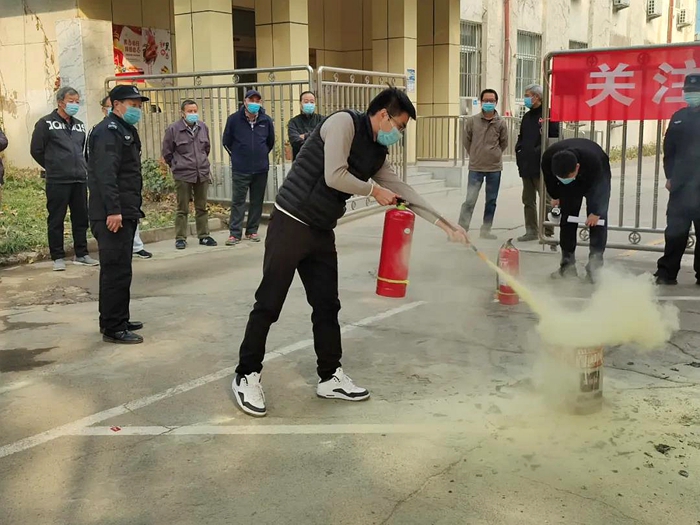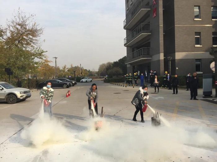 華騰丹陛華公司消防員為參演人員講解了滅火器使用方法和注意事項(xiàng),參加實(shí)戰(zhàn)演練的干部職工們逐一提起干粉滅火器,進(jìn)行實(shí)戰(zhàn)操作。