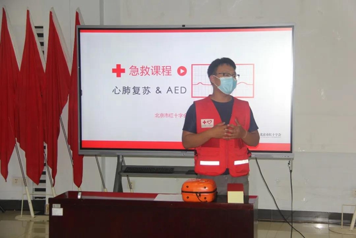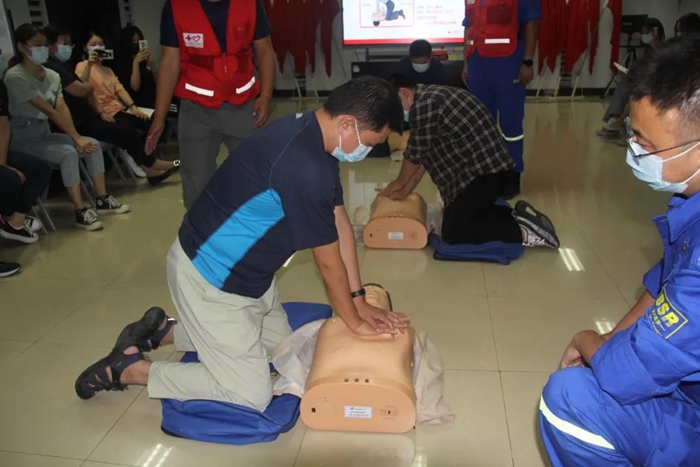培訓(xùn)現(xiàn)場(chǎng),紅十字會(huì)講師講解了意外情況下的心肺急救知識(shí),并利用模擬假人詳細(xì)講解了心肺復(fù)蘇術(shù)和自動(dòng)體外除顫器(AED)的操作要領(lǐng)。