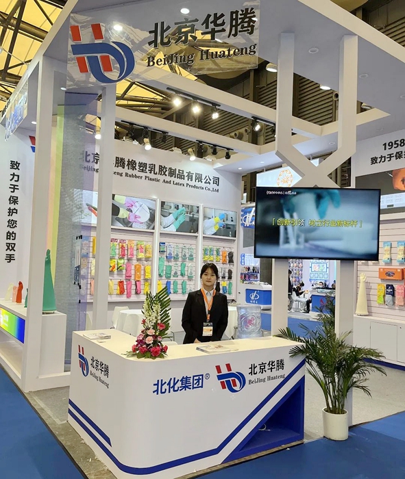 華騰橡塑研發的雪蓮軟丁腈手套新產品首次亮相勞保會。在布展方面,華騰橡塑采用戶外廣告展板、室內新品推介展板和綠色特裝展廳三合一新模式,得到了行業及客戶的廣泛關注。