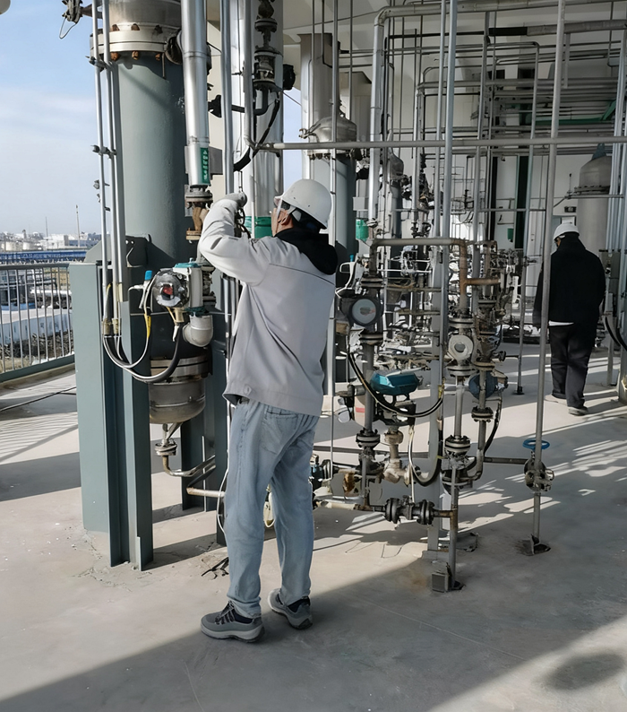 10月20日,華騰通廣高純試劑項(xiàng)目水聯(lián)運(yùn)試車正式啟動(dòng)。此次水聯(lián)運(yùn)覆蓋精餾、灌裝等全流程,計(jì)劃持續(xù)5天,通過模擬物料精餾、灌裝等情形,驗(yàn)證設(shè)備性能、管道密封性及自控系統(tǒng)穩(wěn)定性。